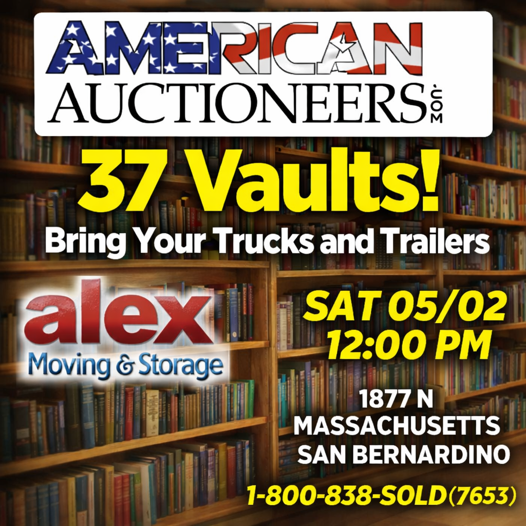 There is a 15% buyers premium on all purchases. Sales tax will added to all purchases unless buyer holds a valid resale permit. All purchases are cash only unless otherwise specified. All items are sold as is, where is, no guarantee or warranty. Removal same day as auction. All moving blankets are property of the facility and must be left at the facility the day of auction. No opening of boxes on facility property.